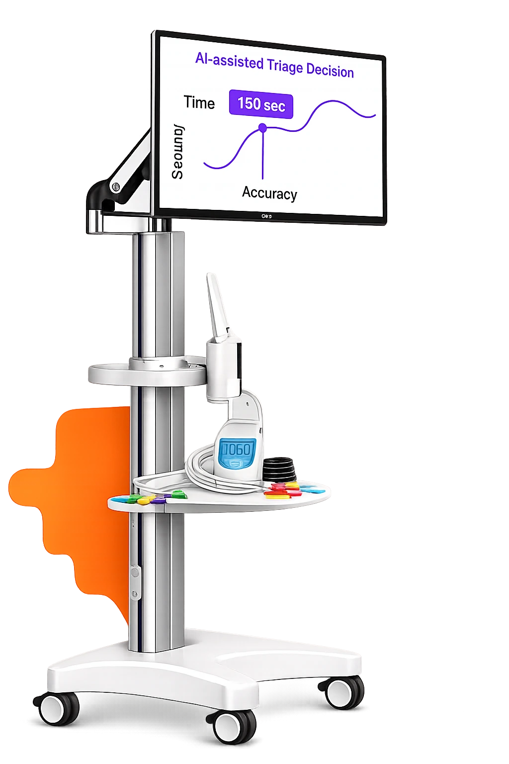 ERTRIAGE™ is an AI-supported triage system designed to seamlessly integrate into emergency department workflows. By rapidly analyzing over 50 key clinical data points — including symptoms, vital signs, and medical history — ERTRIAGE provides real-time support to physicians, classifying patients by acuity with unmatched speed and accuracy.